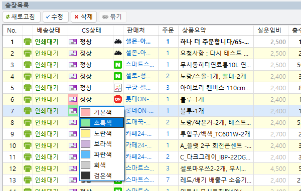 용도에 따라 색상을 다르게 하여 주문들을 관리하실 수 있습니다.