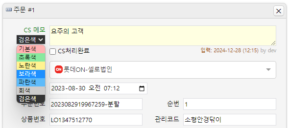 주문에 CS 메모를 남기면 그동안 붉은색으로 표시되었는데